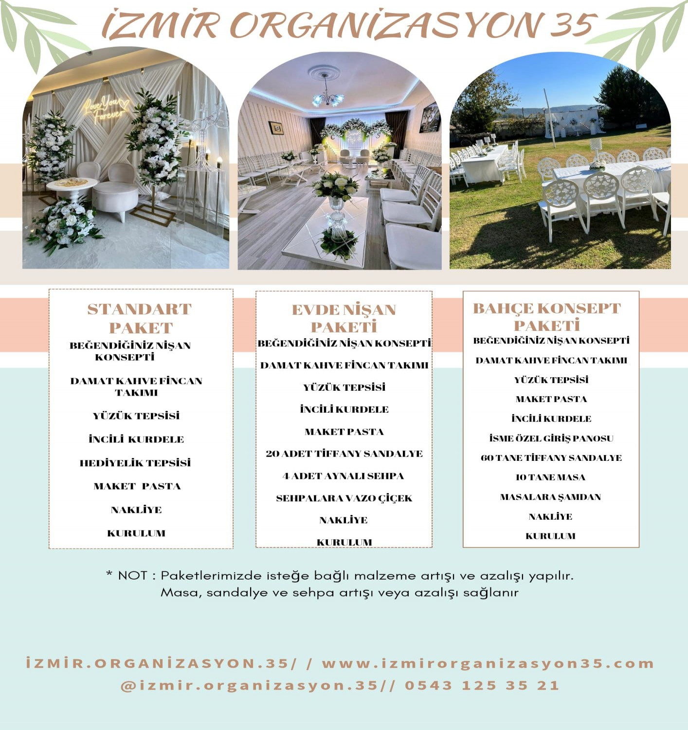Hayatınızın en özel anlarını unutulmaz kılmak için İzmir Organizasyon 35 olarak profesyonel nişan, söz ve kına organizasyonu hizmetleri sunuyoruz. Her çiftin hayal ettiği kusursuz organizasyonu gerçeğe dönüştürmek için titizlikle çalışıyor, şık süsleme detayları ve göz alıcı konseptlerle özel günlerinize değer katıyoruz. Evde nişan organizasyonlarından, söz masası süslemelerine ve geleneksel kına gecesi hazırlıklarına kadar her aşamada profesyonel ekibimizle yanınızdayız.