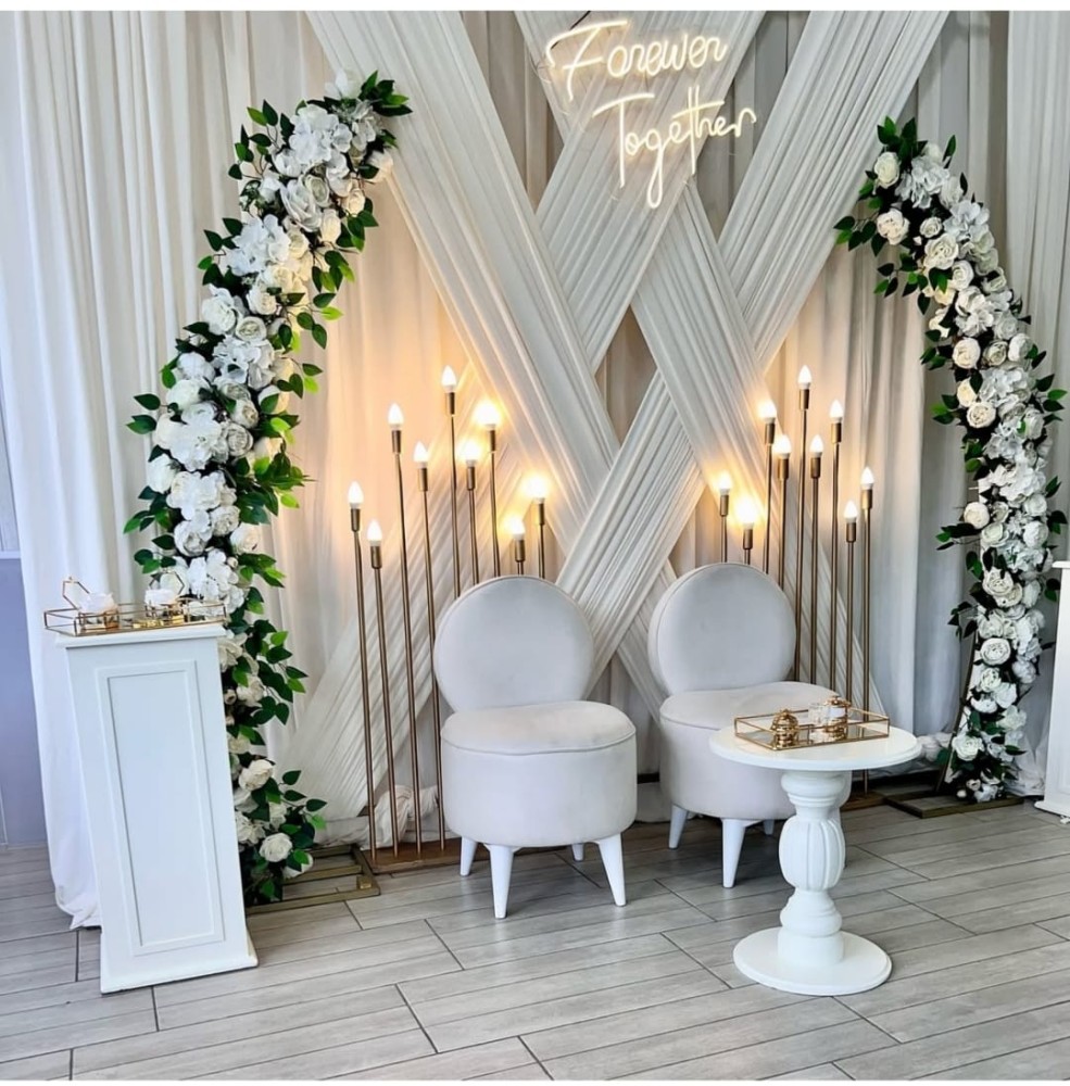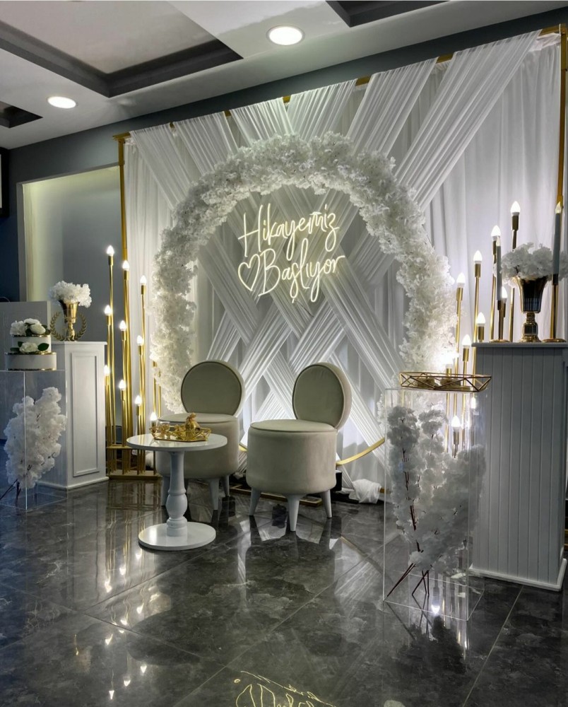Nişan süslemesi yapılırken fotoğraf çekimleri için özel bir alan oluşturulmalıdır. Bu alan için şu detaylar düşünülebilir: